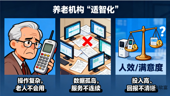 软富云作为深耕智慧养老领域的科技服务商,我们深知:“适老化”解决的是生活便利问题,而“适智化”直击“高效运营+品质照护”这一核心主题。那么,软富云智慧养老软件如何成为“适智化”改造的“核心引擎”?今天一睹为快。