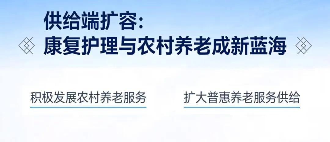 “实施康复护理扩容提升工程”被写入政府工作报告。同时,“积极发展农村养老服务”与“扩大普惠养老服务供给”并列出现。
