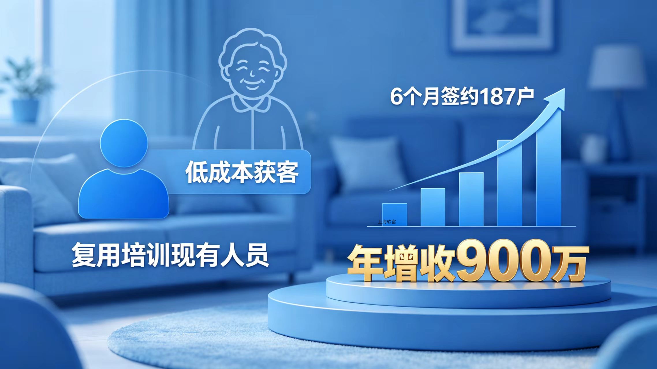 华东某物业公司管理8000户,2023年濒临亏损,2024年转型居家养老,引入软富云居家智慧养老系统,分层设计2000-8000元/月套餐,借助系统实现服务派单、老人健康监测、费用管理等高效运营,复用培训现有人员,低成本获客,6个月签约187户,年增收900万,系统的赋能让服务口碑与运营效率双提升。