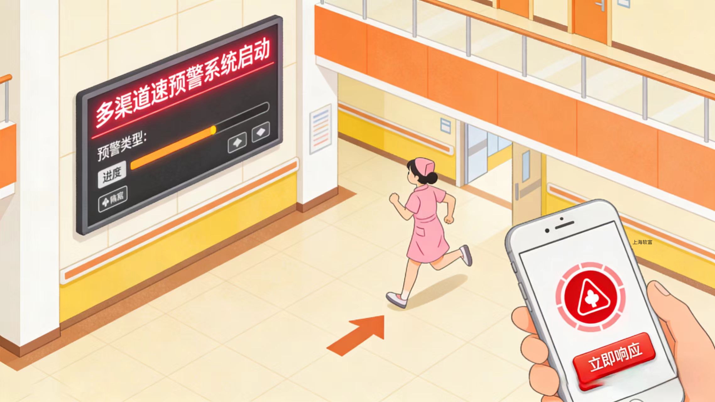 异常情况发生时,系统通过机构大屏幕、微信小程序同步预警,护理人员第一时间响应处置。