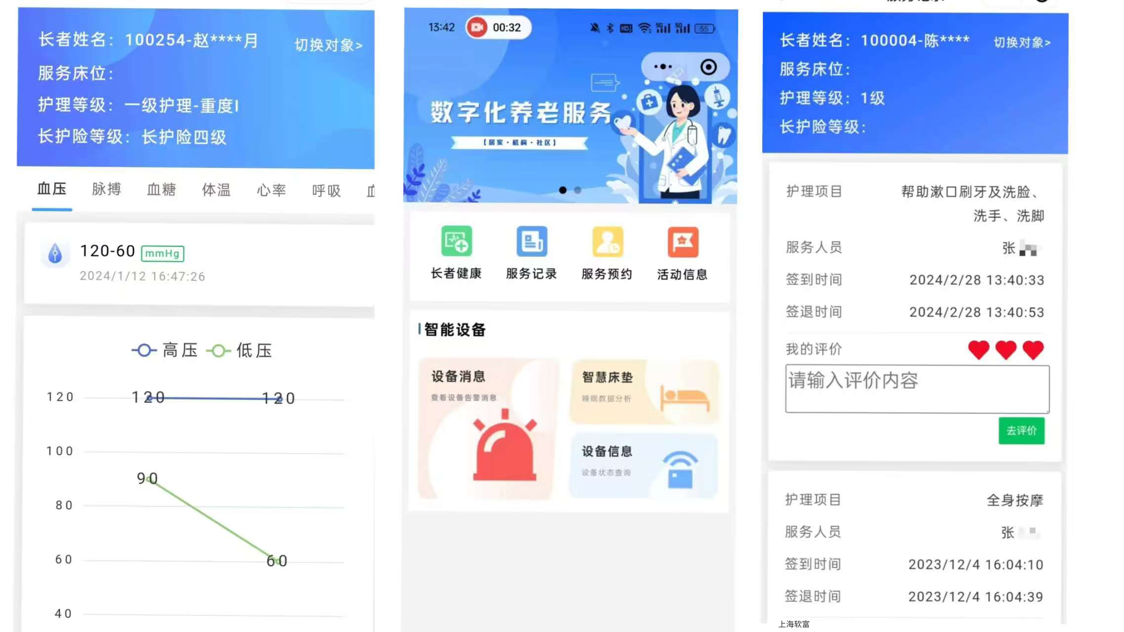 所有健康监测、护理数据自动存储,林女士通过家属端可随时查看,告别模糊反馈,清晰掌握母亲状况。